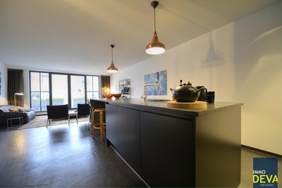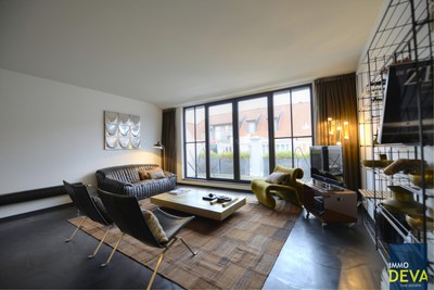 Modern gemeubeld duplexappartement met 2 slaapkamers in een recent gebouw aan de Zoutelaan.