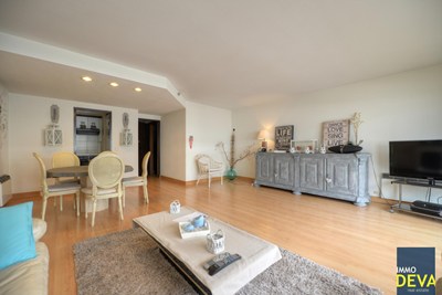 Indeling: Inkom met vestiaire en apart toilet, ingerichte keuken ,mooie ruime living met terras, 2 grote slpk. met ingemaakte kasten, badkamer (ligbad, dubbel lavabo, toilet), terras achteraan. Kelder. Alg. onk.: 100E/m.