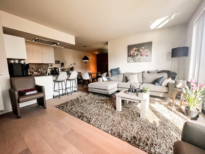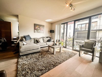 INDELING: Inkomhal met cv-berging (aansl. wasmachine), vestiaire en apart toilet. Aangename leefruimte met toegang tot het zongericht terras. Volledig ingerichte open keuken. Slaapkamer met parket en aansluitende badkamer met inloopdouche en lavabo. Kelder. Ondergrondse parking inbegrepen. Algemene onkosten inbegrepen.