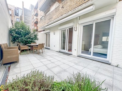 Modern gemeubeld appartement met zeer ruim terras achteraan, gelegen op 20 meter van de Zeedijk en vlakbij het Driehoeksplein.