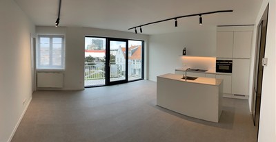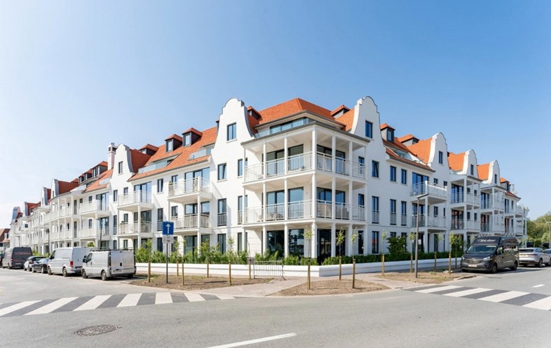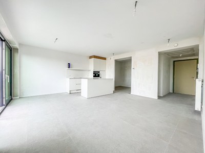 Nieuwbouwappartement met 2 slaapkamers en terras, gelegen in de rustige wijk Duinenwater. Ondergrondse garagebox beschikbaar. INDELING: Inkomhal met cv-berging (aansl. wasmachine), vestiaire en apart toilet. Aangename leefruimte met toegang tot het zuid-oost gericht terras. Volledig ingerichte open keuken. Slaapkamer 1 met parket en aansluitende badkamer met ligbad, lavabo en toilet. Slaapkamer 2 met douchekamer. Kelder. Ondergrondse garagebox: 125€/maand. Forfait algemene onkosten: 100€/maand.