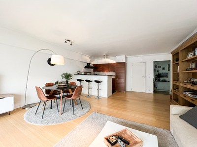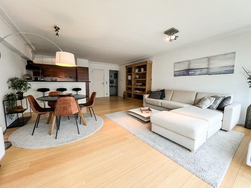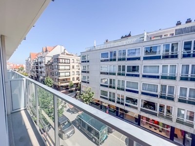 Zonnig, instapklaar appartement op enkele passen van de zee, gelegen in het centrum van Knokke. INDELING : Inkomhal met apart toilet. Lichtrijke, brede woonkamer uitgevend op het balkon vooraan. Open, volledig ingerichte keuken. Slaapkamer met ingemaakte kasten. Badkamer met inloopdouche en lavabo. Privatieve kelder en gemeenschappelijke fietsenberging op het gelijkvloers. Provisie voor het water €25/maand