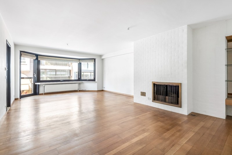 Ruim, ongemeubeld appartement met groot zonneterras achteraan, gelegen op de Kustlaan. Indeling: Ruime inkomhal met afz. toilet, aangename living met open haard, ingerichte keuken aan de voorgevel met grote berging, 3 slaapkamers uitgevend op het terras achteraan, grote badkamer met ligbad, dubbele lavabo en wc en afz. douchekamer. Kelder. Het appartement wordt volledig herschilderd. Alg. onk. inbegrepen.