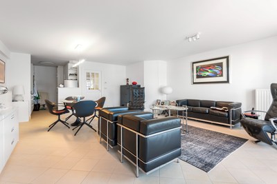 INDELING: Inkomhal met vestiaire en gastentoilet. Zonnige woonkamer uitgevend op het zuid-west gerichte terras. Open, volledig ingerichte keuken. Ruime wasberging. Twee slaapkamers waarvan één met badkamer (lavabo, ligbad en toilet). Terras achteraan. Kelder en fietsenberging. Garagebox te huur in de residentie: 140 euro. Algemene onkosten inbegrepen.