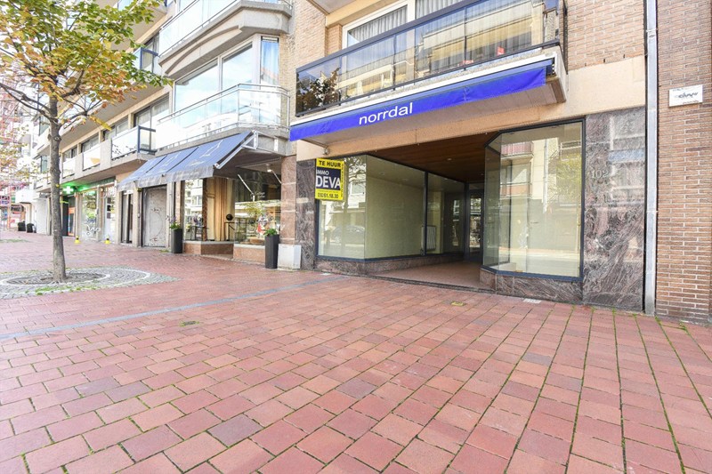 Ruim en zeer centraal gelegen handelsgelijkvloers van ca. 160 m², ( afz. wc, berging, en keuken) vlakbij het Zoute en het Driehoeksplein, in de onmiddellijke omgeving van Neuhaus, Max&Moi, Bloemen Daniel Ost, Kelder van 24 m².