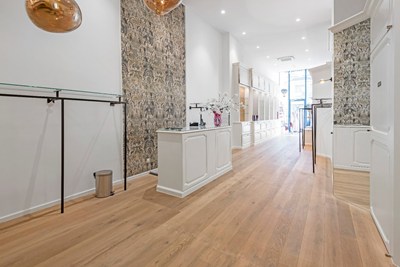 met extra verkoopruimte en sas richting berging/stock. In de onmiddellijke omgeving van RR interior, River Woods, Guess, Printemps Knokke, Swiss Sense, etc. . Onroerende voorheffing en syndickosten komen ten laste van de huurder. Verlichting is over te nemen. Voeding en horeca is toegelaten (tot 22u)!