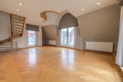 Hoek duplex appartement met 2 slaapkamers en bureauruimte in een villa-residentie gelegen op de Bayauxlaan vlakbij het Rubensplein en de Zeedijk.