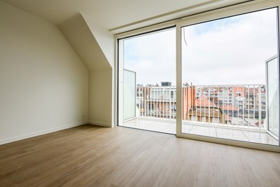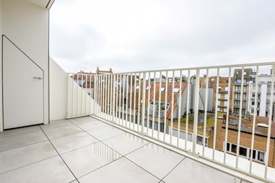 Nieuw, zuid-west gericht duplex appartement gelegen vlakbij de Dumortierlaan, in een rustige éénrichtingsstraat. Inpandige parking te huur