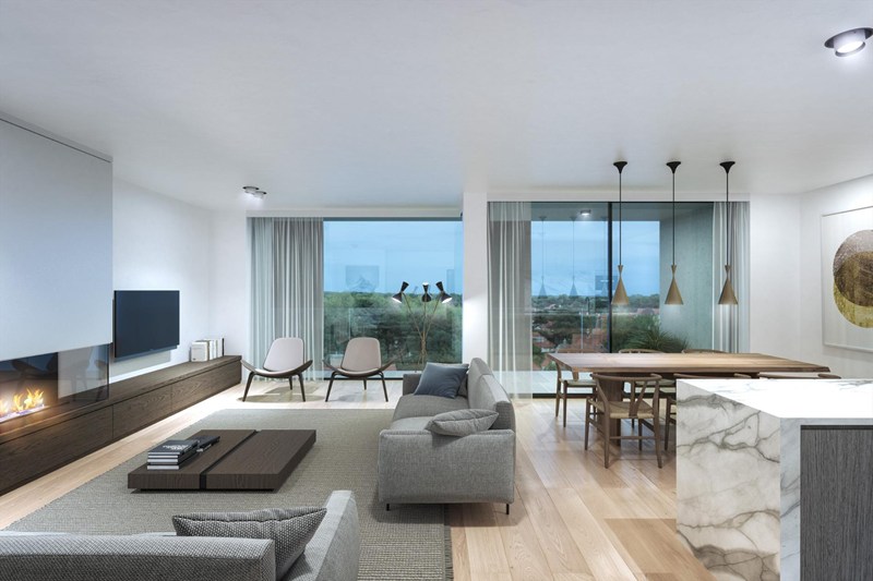 Exclusief, luxueus afgewerkt nieuwbouw appartement ( 8 meter gevelbreedte) op één van de laatste topligging op de Kustlaan, gelegen vlakbij het Albertplein, met een prachtig open zicht over het Zoute.