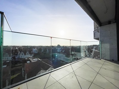 INDELING: Inkom met gastentoilet en C.V.-berging met aansluiting wasmachine. Zuidgerichte woonkamer uitgevend op het prachtig terras (1m80 diep!) met vrij zicht over het Zoute. Volledig ingerichte open keuken voorzien van alle comfort. 2 slaapkamers achteraan met toegang tot het terras achteraan. Badkamer met ligbad of inloopdouche. Aparte douchekamer. Kelder. Garages te koop op wandelafstand. Verkoop onder registratierechten.