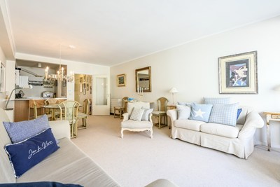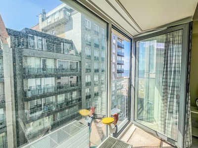 Op te frissen appartement met mooi zijdelings zeezicht gelegen vlakbij het Driehoeksplein op 30 meter van het strand.