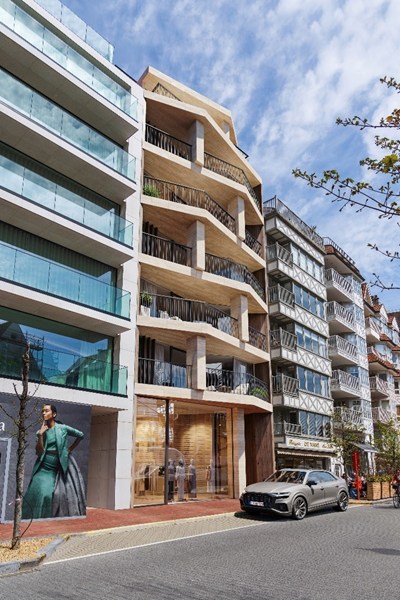 Nieuw appartement in een prestigieus project in een tijdloze architectuur, prachtig gelegen aan de zonnekant van de Kustlaan in het Zoute, tussen het Albertplein en het Driehoeksplein. Ruime garages te koop gelegen tegenover de residentie.