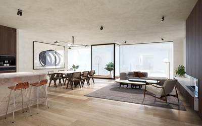 Ruim, luxueus afgewerkt nieuwbouwappartement ( 26m² terrassen) met een gevelbreedte van meer dan 10 meter gelegen in het centrum van Knokke. Ondergrondse garageboxen te koop ( 15 – 45 m²).