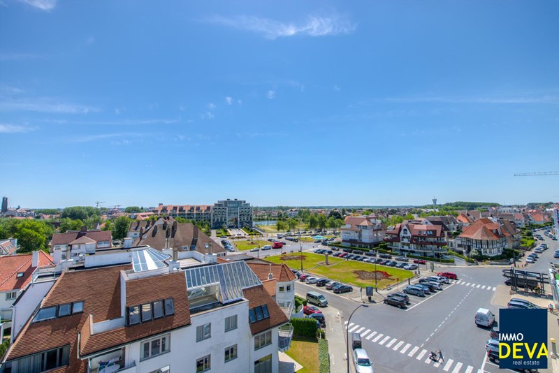 Nieuw hoekapp. op de 6de verdieping van 116 m² met 26 m² terras gelegen op de hoek van de J. Nellenslaan en het Canadasquare met zijdelings zeezicht en een open zicht op het plein. Zuidwesten oriëntatie. INDELING: Inkomhall met gastentoilet, vestiaire en berging. Mooie hoekwoonkamer omgeven door het ruim zonneterras ( 1,75 meter diep). Luxueus ingerichte open keuken voorzien van alle comfort. 2 volwaardige slpk., beiden uitgeven op het terras achteraan, waarvan master ( ca. 15m²) met annex badk. en de overige kamer met douchek. Kelder en fietsenberging. De indeling van het app. kan gewijzigd worden in samenspraak met architect en bouwheer.