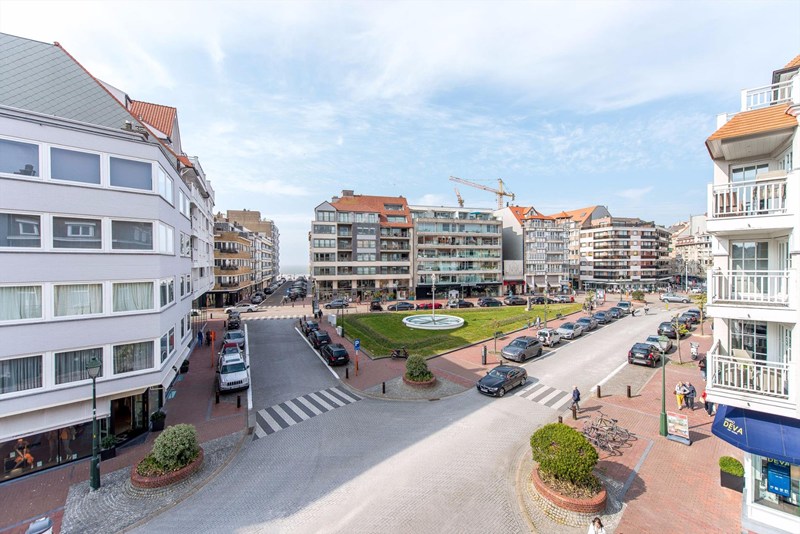 Prachtig hoekappartement in een prestigieus project in moderne stijl, ideaal gelegen op de hoek van Dumortierlaan en de Kemmelbergstraat aan het Driehoeksplein. Zeezicht en zicht op het plein.