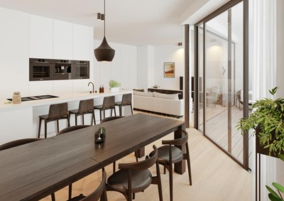 Prachtig nieuw appartement van 140 m² met 24 m² terras gelegen aan de zonnekant van de Van Bunnenlaan, tussen de Kustlaan en de Dumortierlaan, op wandelafstand van de Zeedijk.