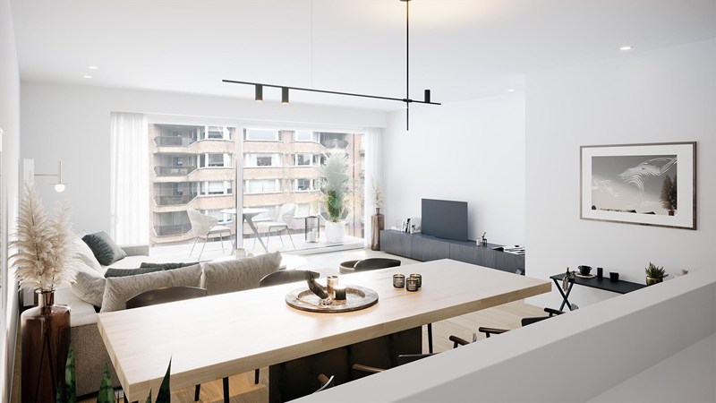 Nieuw app. van 87,5 m² met 11 m² terras gelegen in een nieuw project in moderne stijl op de Paul Parmentierlaan op wandelafstand van het Rubensplein en de Zeedijk.
