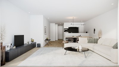 Nieuw app. van 87,5 m² met 11 m² terras gelegen in een nieuw project in moderne stijl op de Paul Parmentierlaan op wandelafstand van het Rubensplein en de Zeedijk.