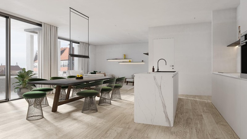 Prachtig nieuw appartement van 137 m² met 38 m² terras gelegen aan de zonnekant van de Lippenslaan in het centrum van Knokke