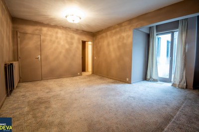 INDELING: Inkomhal. Aparte keuken. Woonkamer uitgevend op de zuid-west gerichte koer. Vestiaire/berging. Gastentoilet. Nachthal. 2 slaapkamers met buitenraam. Ruime badkamer met ligbad en toilet.