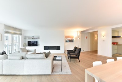Ruim hoekappartement met meerdere terrassen centraal gelegen in het centrum van Knokke vlakbij de Dumortierlaan. Inclusief dubbele garage.