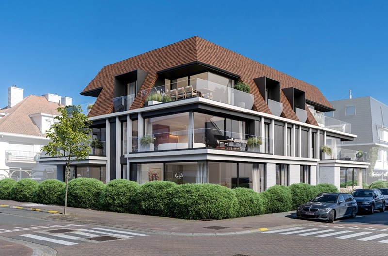 Nieuw hoekappartement gelegen in exclusieve nieuwbouw villaresidentie gelegen op de hoek van J. Nellenslaan en de Zwaluwenlaan, vlakbij het strand en het Rubensplein. Mogelijkheid van aankoop inpandige garagebox.