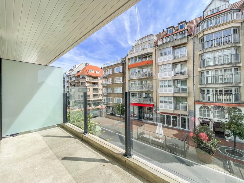 INDELING: Inkomhall met gastentoilet en berging. Aangename woonkamer uitgevend op het zonovergoten terras ( 1m50 diep). Volledig vernieuwde half-open keuken. Badkamer met ligbad en dubbele lavabo. Slaapkamer (12m²). Fietsenberging op het gelijkvloers. Private kelder. De gevel, terras ballustrades en de lift van het gebouw werden recent vernieuwd.