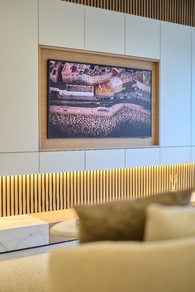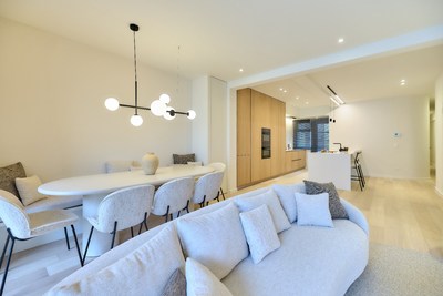 Indeling: Inkomhal met gastentoilet, ruime leefruimte uitgevend op het terras vooraan met zijdelings zeezicht. Eethoek. Royale uitgeruste keuken met toegang tot het balkon. 4 volwaardige slaapkamers, allen met ingemaakte kasten. Twee slaapkamers zijn voorzien van een douchekamer. Aparte badkamer met ligbad, dubbele lavabo en toilet. Kelder. Mogelijk tot aankoop van de meubels.
