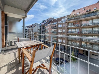 Zeer mooi gerenoveerd appartement met zonnig terras vlakbij de Lippenslaan en de zeedijk. INDELING: inkomhall met apart toilet en berging. Lichtrijke , ruime woonkamer uitgevend op het zonnig terras vooraan ( middag - en avondzon). Open, volledig ingerichte keuken. Grote slaapkamer met ingemaakte kasten. Badkamer met lavabo, toilet, douche en ligbad. Tweede slaapkamer met stapelbed en inbouwkasten. Private kelder in het gebouw en gemeenschappelijke fietsenberging op het gelijkvloers. Ruime inpandige garagebox te koop ( 9m80 x 2m65) €135.000.