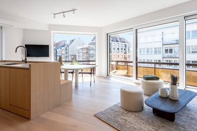 Lichtrijk hoekappartement gelegen op de Lippenslaan/Zoutelaan met 3 slaapkamers. INDELING : Inkomhal met apart toilet. Zeer lichtvolle woonkamer met eet-en zithoek. Volledig open ingerichte keuken. 2 ruime slaapkamers met ingebouwde kasten. Douchekamer met inloopdouche, dubbele lavabo en toilet. Derde slaapkamer voor stapelbed met ensuite douchekamer. Private kelder.