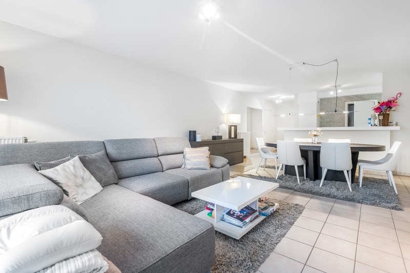 INDELING: Inkom met apart toilet en videofoon. Ruime living met een terras vooraan. Amerikaanse ingerichte keuken. Berging met aansluiting wasmachine. 2 Dubbele slaapkamers waarvan 1 met ingemaakte kasten. Afzonderlijke badkamer met ligbad en toilet. Afzonderlijke douchekamer. Kelder op -2 en fietsenberging (-1).