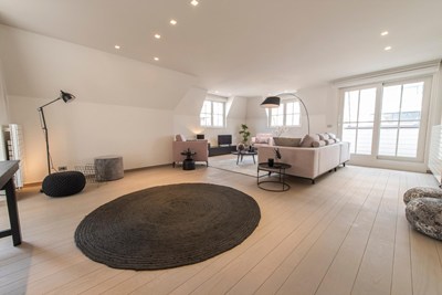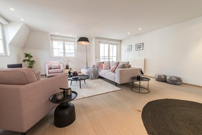 Prachtig hoekduplex dakappartement met zijzeezicht gelegen op de Kustlaan in het Zoute tussen het Albertplein en het Driehoeksplein. Inpandige garagebox te koop.