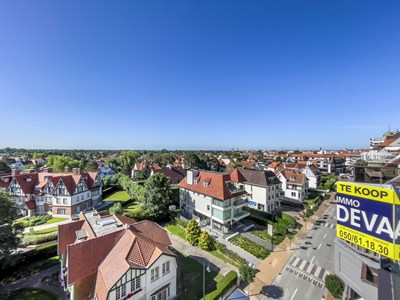 INDELING: 6 ° Verd: Inkom met gastentoilet en nutsberging. Zuidgerichte woonkamer uitgevend op het zonneterras met een prachtig open zicht over het Zoute .Prachtige doorkijkhaard. Volledig ingerichte open keuken met eethoek met toegang op het terras achteraan. 7° Verd: nachthal met toilet. 2 slaapkamers met aansluitende badkamers. Derde slaapkamer. Kelder.