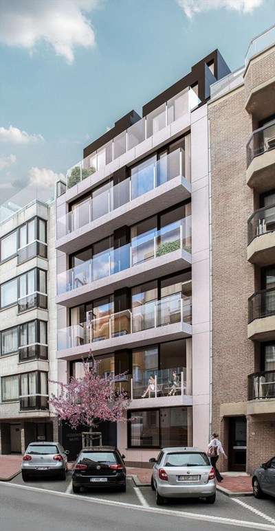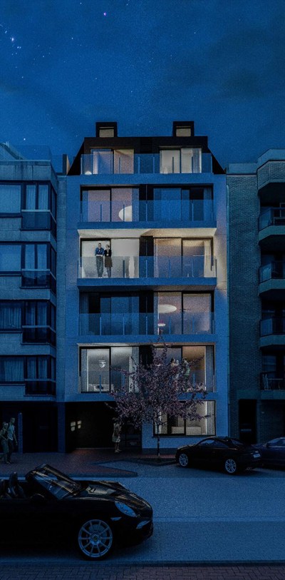 Nieuw, zonnig app. ( afwerking voorzien na de zomer) met terras gelegen op de Diksmuidestraat vlakbij het Lichttorenplein en de Zeedijk. Veel lichtinval. INDELING: 5°V: Inkomhall met gastentoilet en C.V.-berging met aansl. wasmachine. Zonnige living uitgevend op het terras . Volledige ingerichte open keuken met eetruimte .6° V : Nachthall met toilet , 2 slaapkamers voor een dubbel bed en een 3° kleinere slpk. Badkamer. Kelder en fietsenberging.