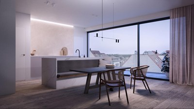 Prachtig duplex dakappartement van 206m² met 35m² terrassen gelegen aan de zonnekant Lippenslaan in het centrum van Knokke. Hoge plafonds!