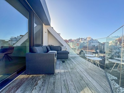 Recent duplex dakappartement (132m²) met ruime terrassen (17m²) gelegen op de hoek van de Zoutelaan en de Piers de Raveschootlaan, op wandelafstand van de Dumortierlaan en de Lippenslaan.