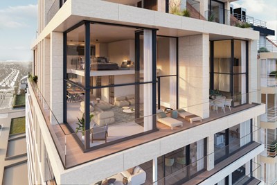 Uitzonderlijk hoekappartement met 26 meter gevelbreedte zeezicht ( frontaal en zijdelings) en verzichten over het Knokse hinterland gelegen op hoek van de Zeedijk en de Meerlaan in een toonaangevend nieuwbouwproject.