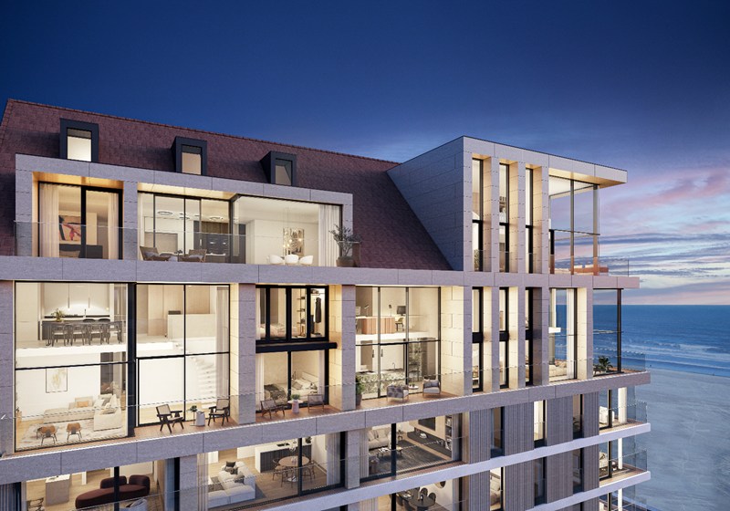 Uitzonderlijk hoekappartement met 26 meter gevelbreedte zeezicht ( frontaal en zijdelings) en verzichten over het Knokse hinterland gelegen op hoek van de Zeedijk en de Meerlaan in een toonaangevend nieuwbouwproject.