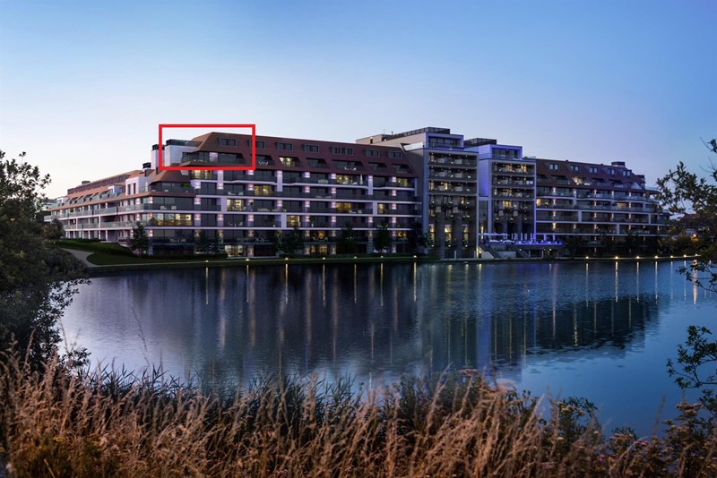 Exclusief, luxueus afgewerkt hoekduplex dakappartement (296m²) met ruime terrassen (48m²) en gevelbreedte van ca. 12 meter gelegen in de prestigieuze residentie La Rive - La Réserve II met één van de mooiste zichten van Knokke op het Zegemeer. INDELING: 5de verd.: Inkomhall en sas met vestiaire en gastentoilet. Binnenlift. Zuid-west gerichte hoekliving (ca. 90m²) uitgevend op het prachtig hoekzonneterras (3 meter diepte - 41m²) met zicht op het Zegemeer en het Knokse hinterland. Eetruimte met leefkeuken, uitgevend op een terras, en bijhorende berging. Slaapkamer met aansluitende douchekamer Lavabo. 6de verd..: nachthal met apart toilet. 3 volwaardige slpk. waarvan master met dressing. Badkamer met ligbad en douche. Aparte douchekamer. Hoge plafonds. Vloerverwarming. Kelder te koop: €5.000. Garages te koop ( 7 * 3m50) : €65.000 en parkings ( 6 * 2m50) : € 40.000