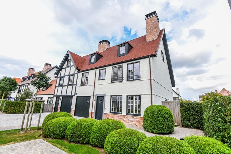 Recente, luxueus afgewerkte koppelvilla gelegen in een standingvolle, residentiële buurt vlakbij de nieuwe Golf, recreatiegebied Duinenwater en het winkelcentrum van Knokke.