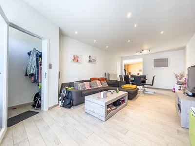 INDELING: GLV: Inkom, aangename living met eethoek, aansluitend ruime keuken met voorraadberging, uitgevend op de zonnige tuin achteraan. Badkamer met dubbele lavabo, ligbad en wc. Berging met aansluiting wasmachine. Garage. Eerste verd.: Hal met ingemaakte kasten, twee grote slaapkamers (rolluiken voorzien), afz. douchekamer met lavabo, douche en wc. Geïsoleerde zolder. De elektrische installatie is conform AREI.